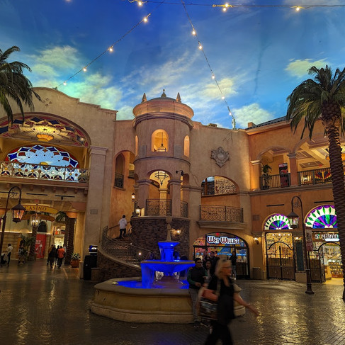 There was an indoor shopping strip on the way to our room which reminded me of the indoor shopping in Vegas (at the Bellagio or Caesars Palace I think) with how the ceiling was painted to imitate the sky. This led into the casino they don't want you to leave but you finally figure out how to escape to hotel.