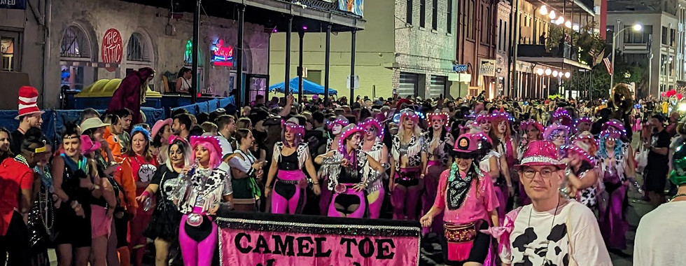 We left the raucous din of Bourbon St in the Quarter behind to stroll toward a more locals holiday hangout. Along the way we found a single group of adults handing out candy. Yes, we took the offerings from strangers. Yes, we ate our treats. And yes, they were tasty.