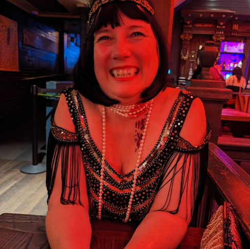 I opted to dress as a flapper vampire (limited wardrobe space in the RV prevents a full on Victorian dress) while Dave was slightly more formal, and very handsome.