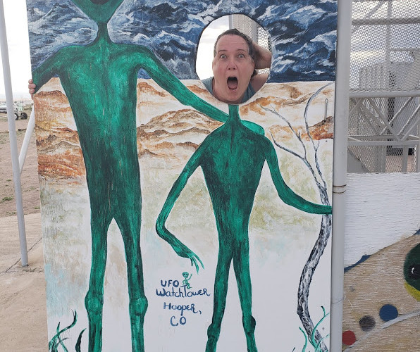 Always in the search for the unusual to see along the way we discovered the UFO Watchtower near Hooper, Co. Though after passing through I've become a skeptic. No, not of whether UFOs exist, but if Hooper is a real town. It was becoming that barren. The UFO Watchtower was a nice little stop, which I'm glad we had time for. It is a completely eclectic mix of alien and other memorabilia, loosely organized (loosely being the keyword). You are encouraged to bring something to leave, which Adriane gladly did on our behalf. It is a fun place to see on a route many are not likely to take.