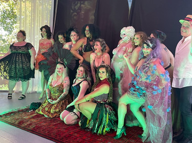 In order to keep our trip classy, we dressed in our best afternoon tea attire and enjoyed our very first burlesque show held on the grounds of the beautiful Victorian Belle Mansion.